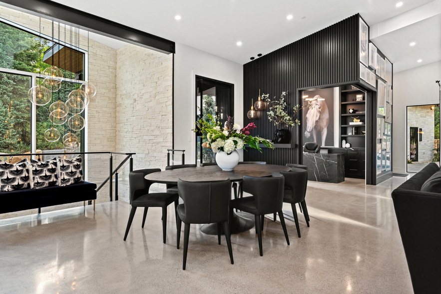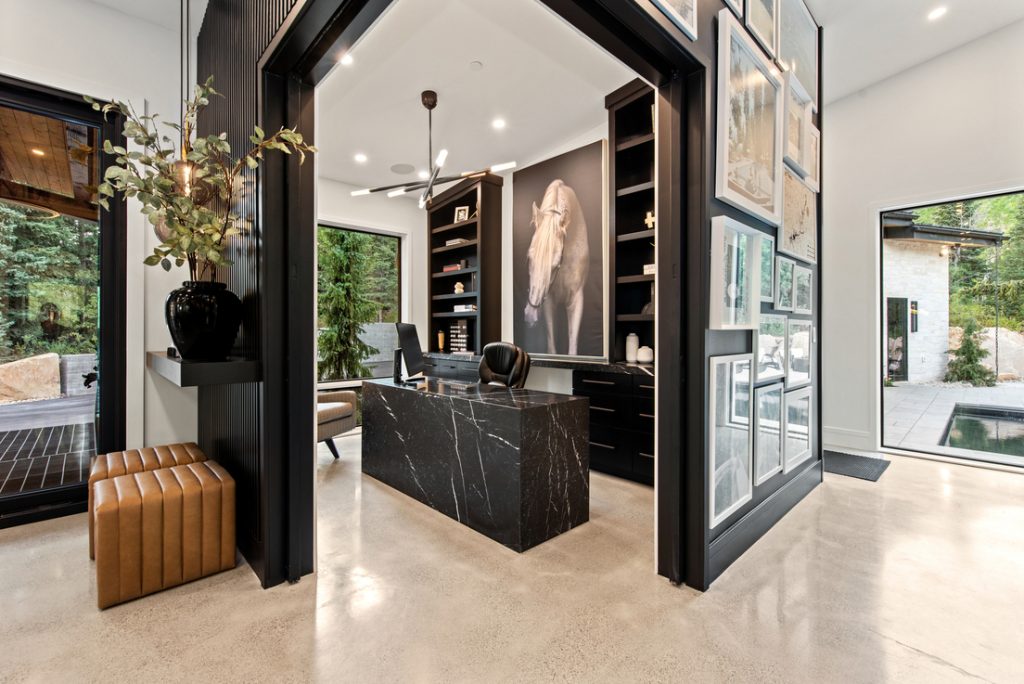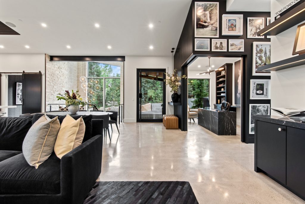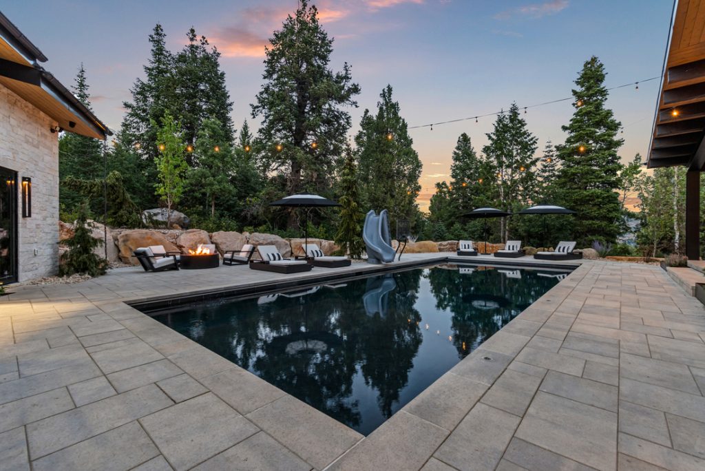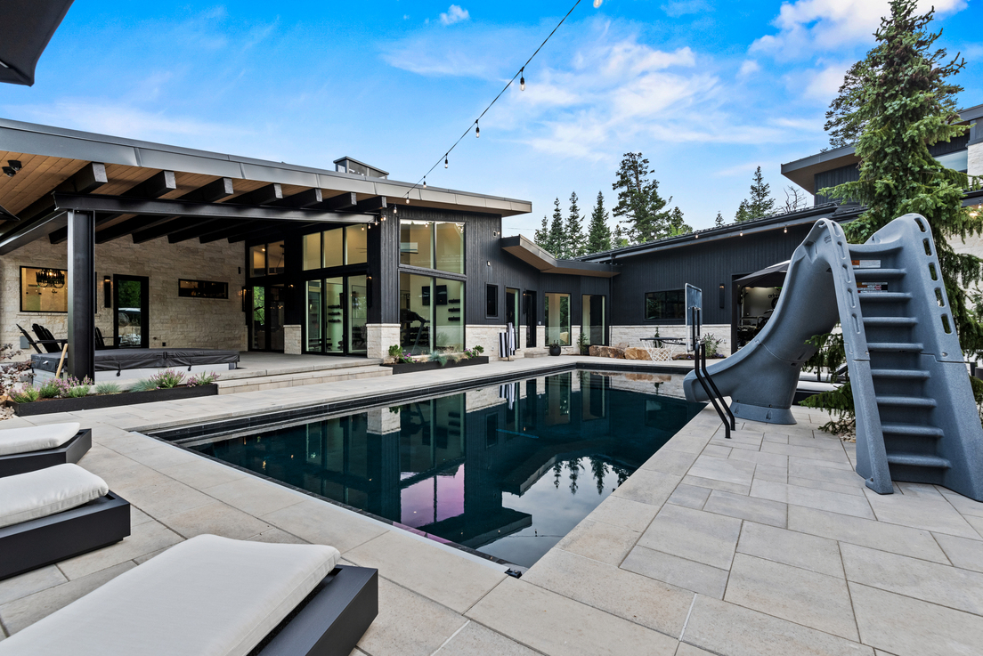 Tucked into the wooded landscape of Parleys Summit in Park City, this custom home redefines mountain modern living with a vision that is both bold and beautifully integrated into its natural surroundings. Set on a private, wooded lot, the location is truly unmatched — offering serenity, seclusion, and views that stretch beyond words. The exterior showcases an extraordinary attention to detail, featuring a striking custom water feature that runs the length of the year, architectural steel beams, and a sleek black pook that adds a touch of luxury. A separate guest house provides added flexibility and privacy, while an oversized garage doubles as an indoor pickle ball court. Inside, the home takes a fresh approach blending openness with intentional spaces that elevate both comfort and experience. Expansive windows flood the home with natural light and frame panoramic forest and mountain views, while large sliding glass doors and a custom serving window connect the indoors to the outdoor living areas seamlessly. The open-concept floor plan allows for effortless flow, perfect for both relaxed living and entertaining. Thoughtful additions like a built-in golf simulator and automatized lifts throughout, speak to the liefestyle-driven design. Every detail of this home – inside and out – was crafted to be completely one of a kind, offering a living experience as refined as it is unforgettable.